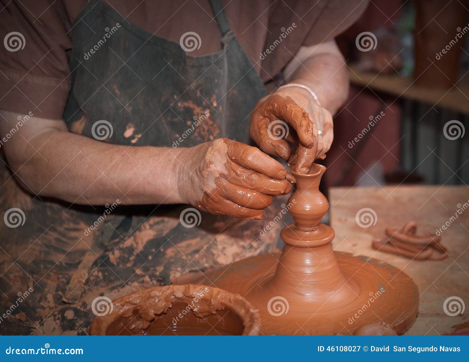 Potter molds a lump of clay into a beautiful vase his hands skillfully