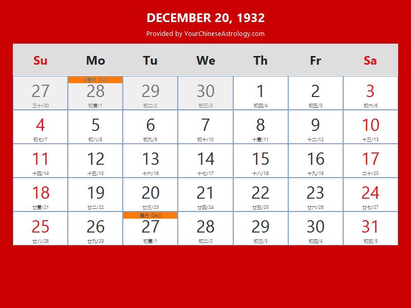 Chinese Calendar Dec 20 1932: Auspicious Things to Do and Hours Bazi