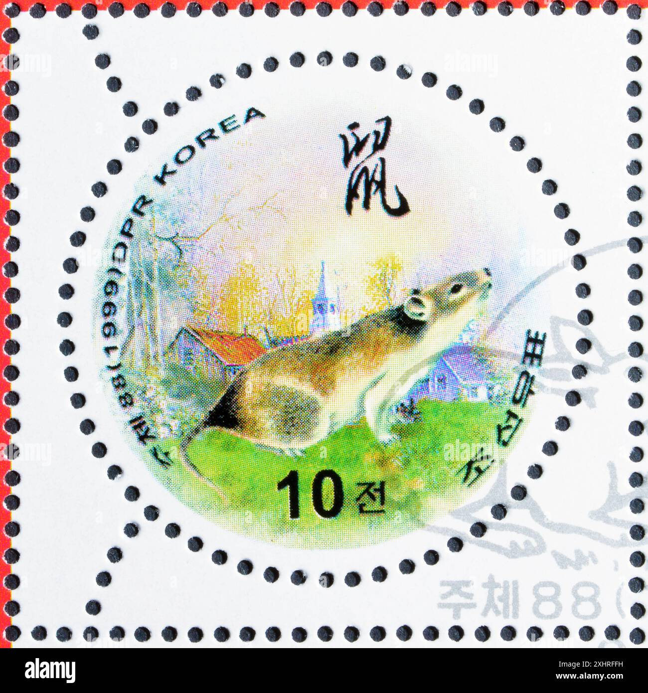 Cancelled postage stamp printed by North Korea that shows Rat (Rattus