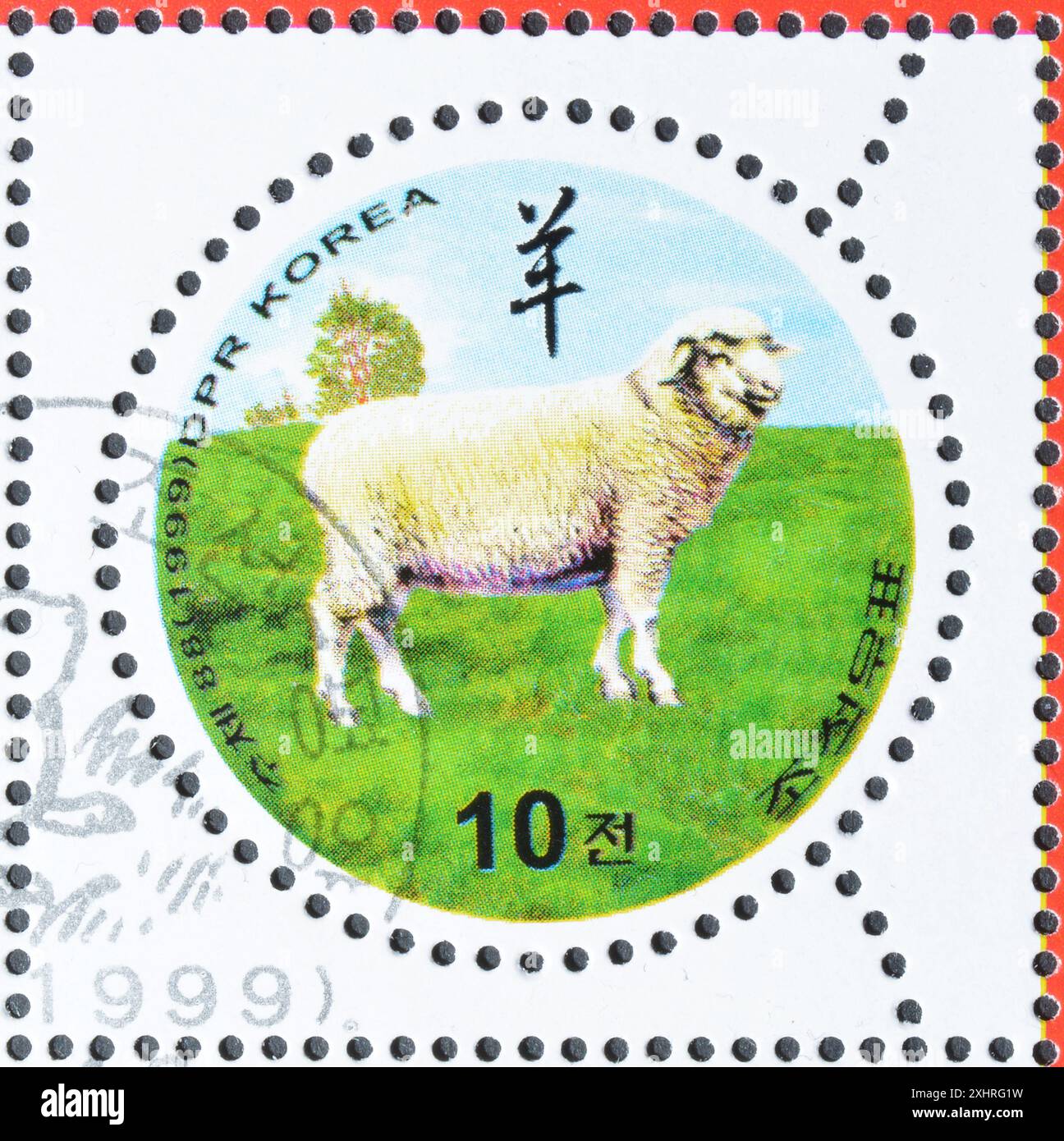 Cancelled postage stamp printed by North Korea that shows Sheep (Ovis