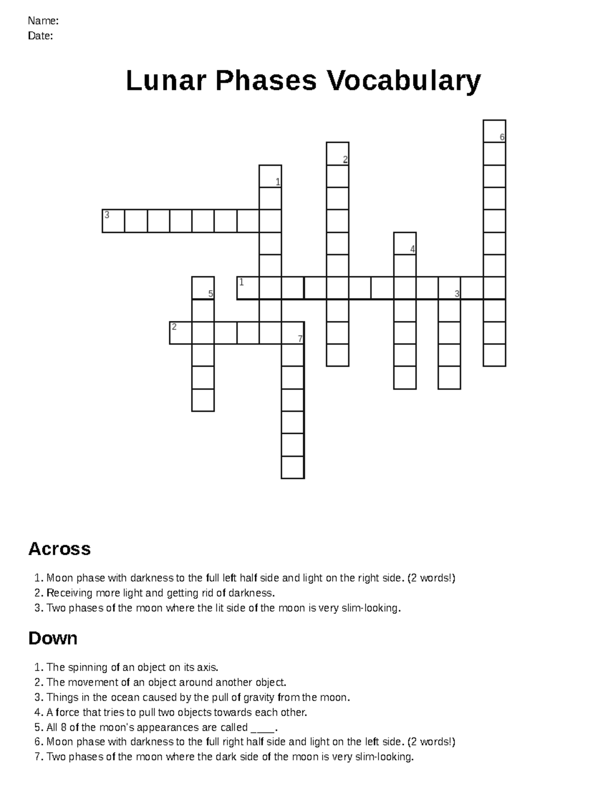 Moon Phases and Lunar Cycle Crossword Labs