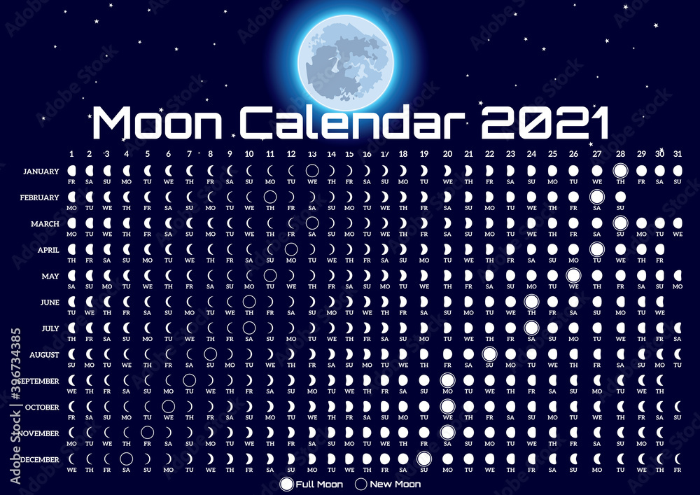 Moon Calendar Lunar Phases Calendar 2021 Poster Design Monthly Cycle