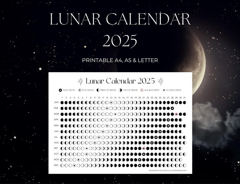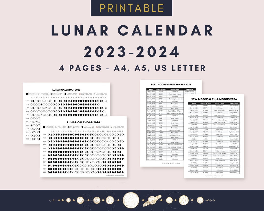 Moon Calendar 2024 Moon Phases Lunar Calendar Printable in A4 Size Jpeg