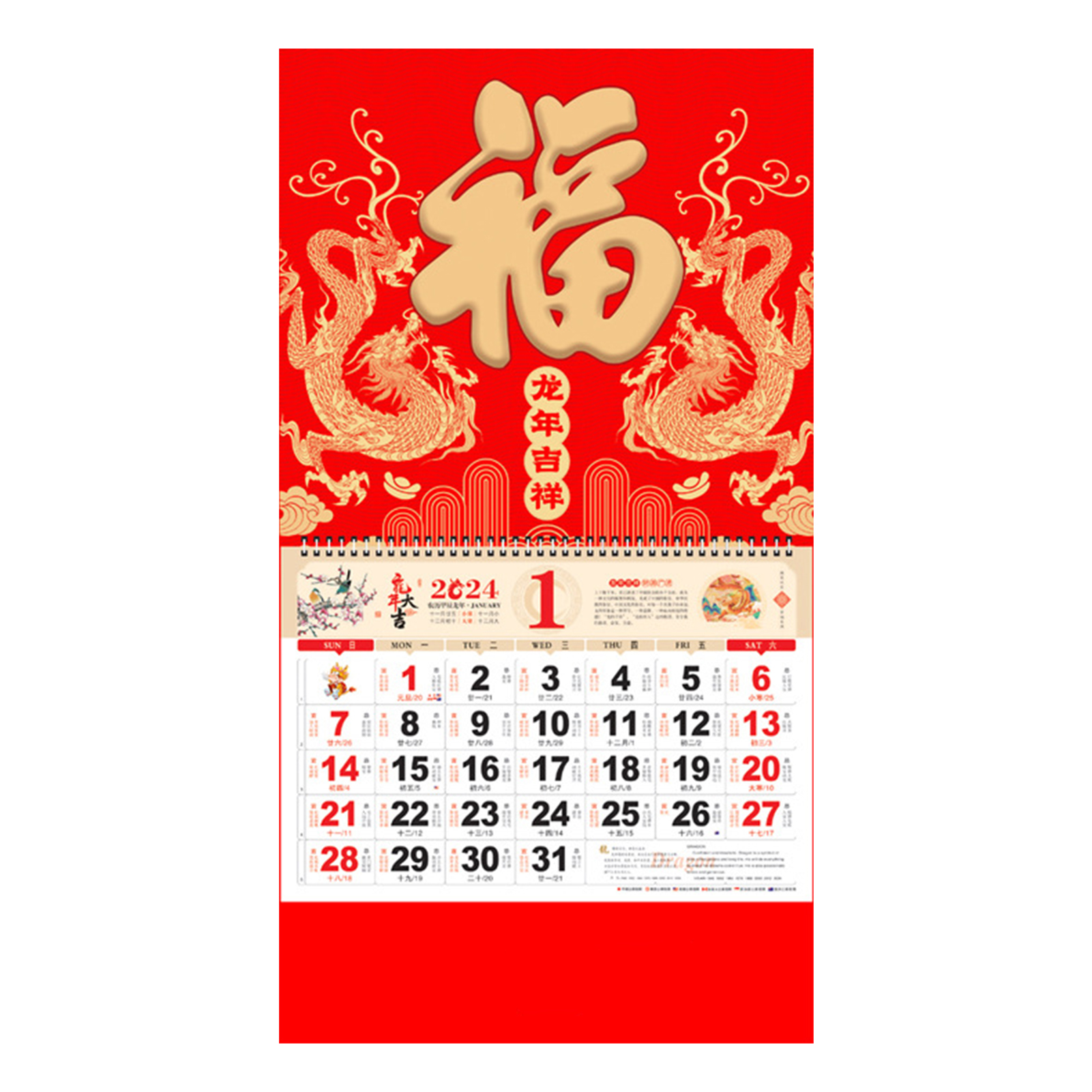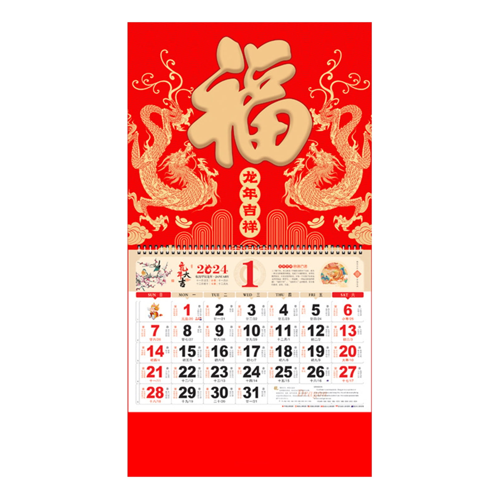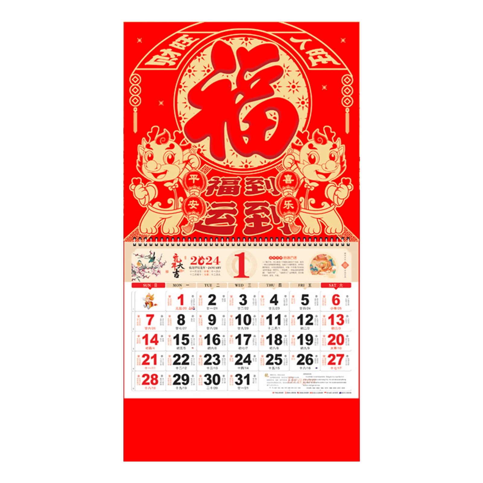 wirlsweal Traditional Wall Calendar 2024 Year of the Dragon Wall