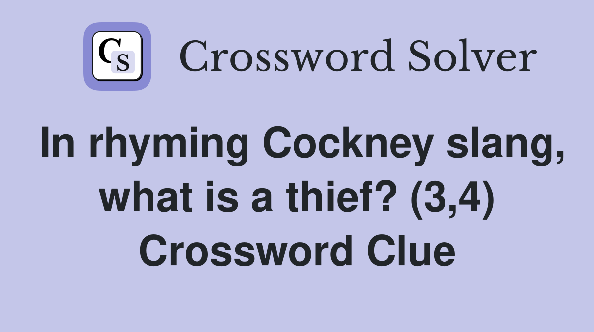 In rhyming Cockney slang what is a thief? (3 4) Crossword Clue