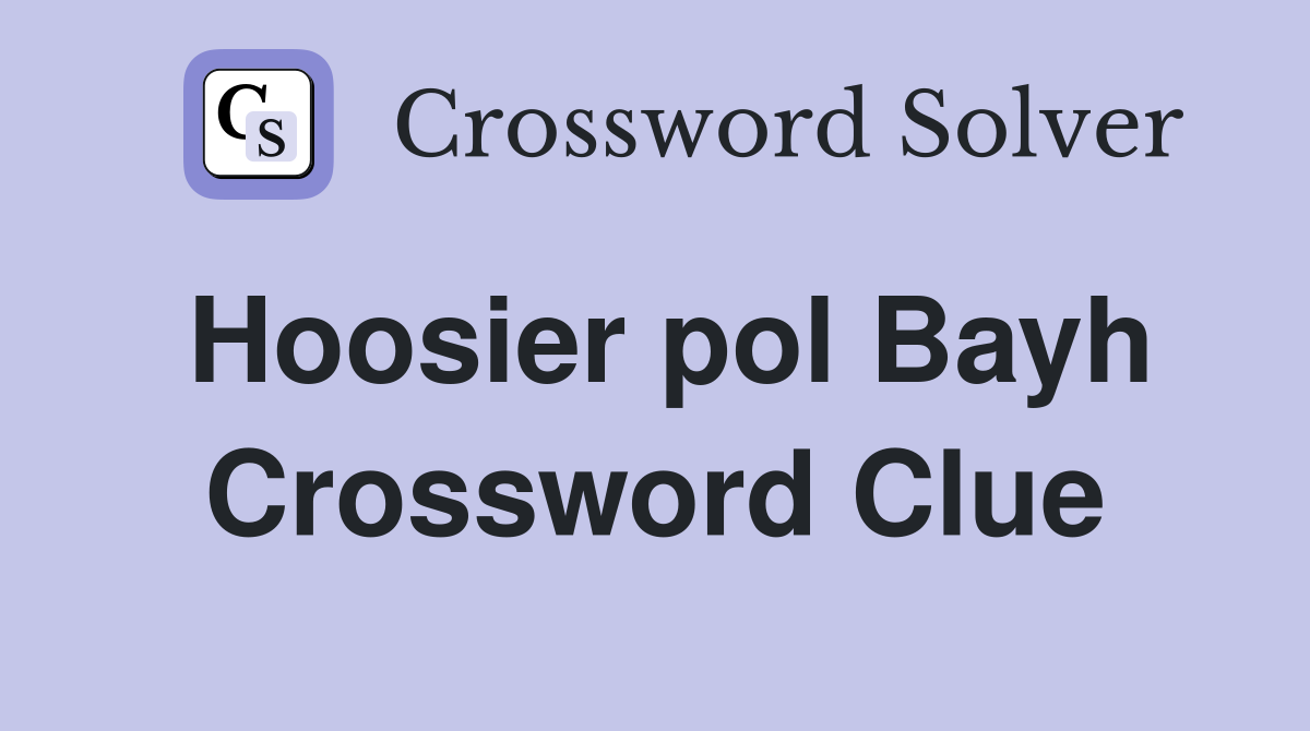 Hoosier pol Bayh Crossword Clue Answers Crossword Solver