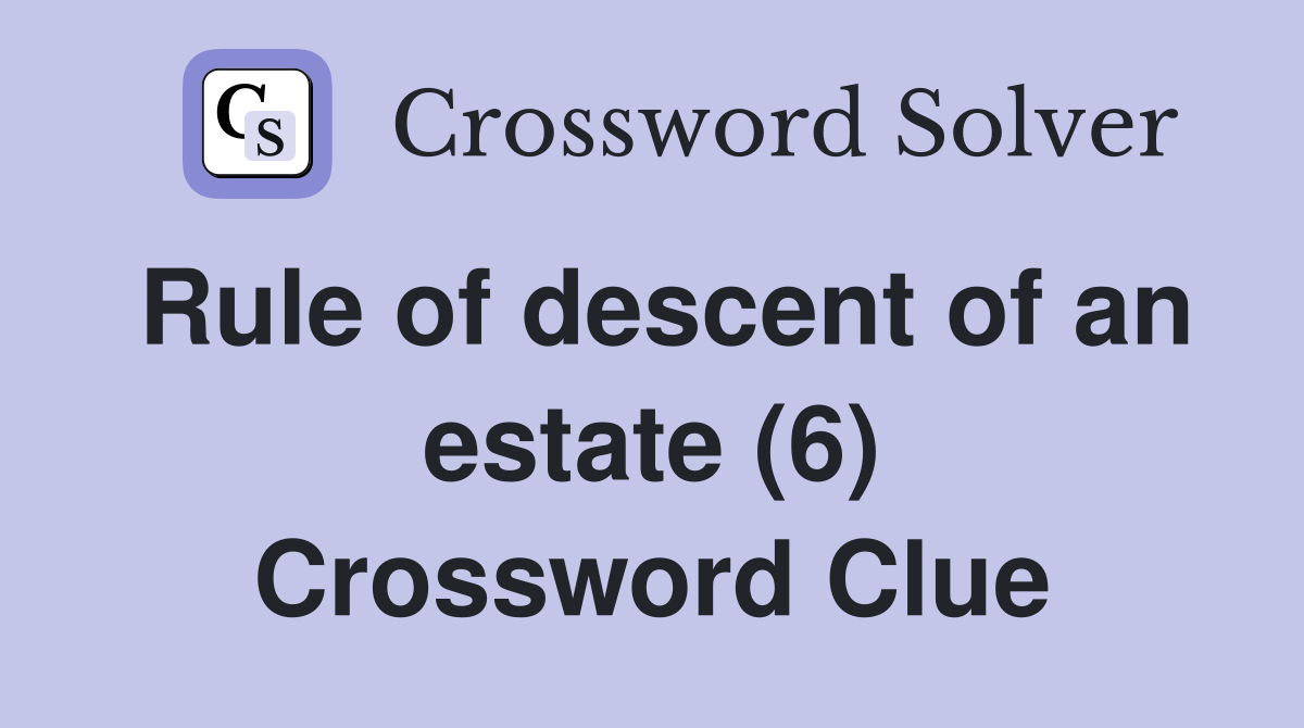 Rule of descent of an estate (6) Crossword Clue Answers Crossword