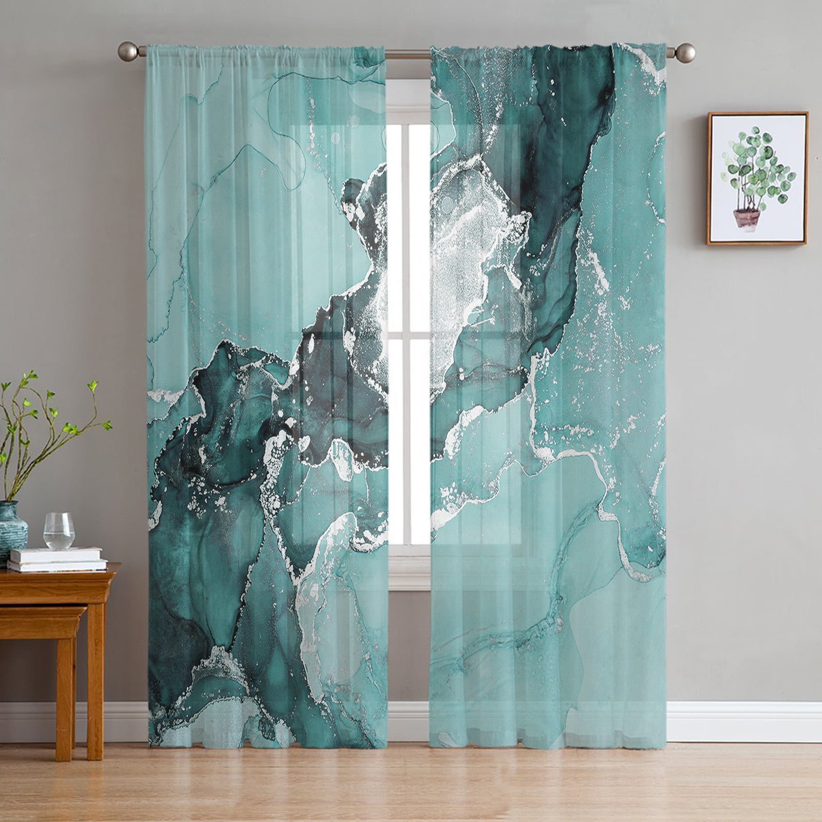 Luxury Tulle Curtains Marble Phnom Penh Ink Living Room Kitchen Chiffon
