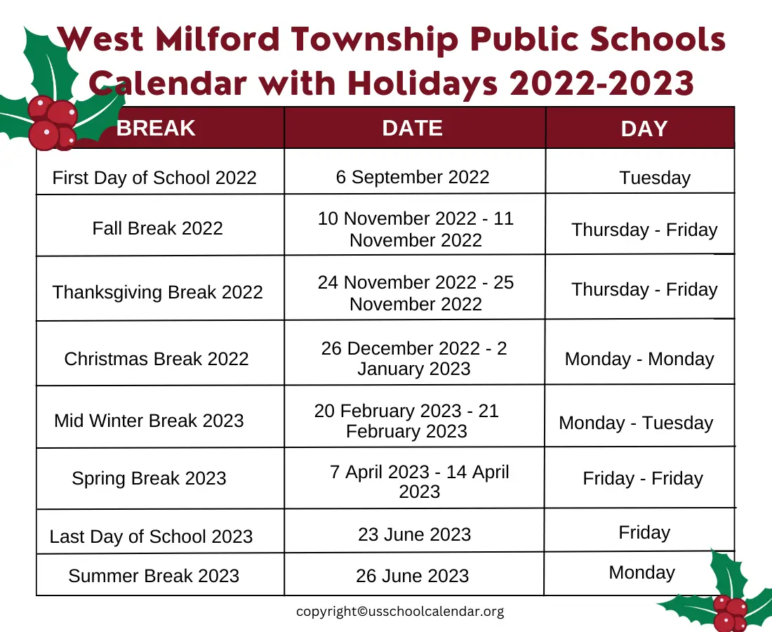 West Milford Township Public Schools Calendar US School Calendar
