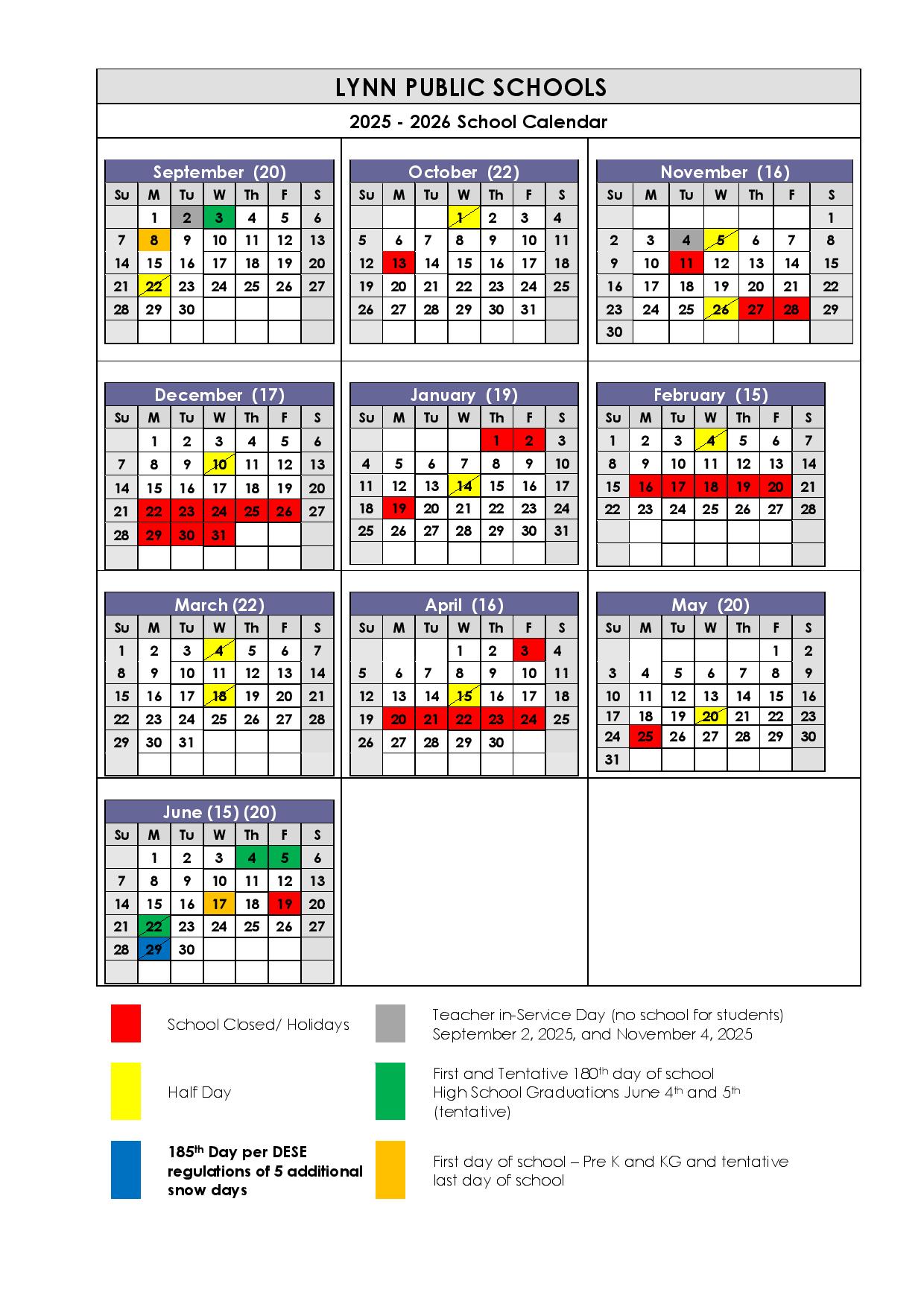 Lynn Public Schools Calendar 2025 2026 Massachusetts