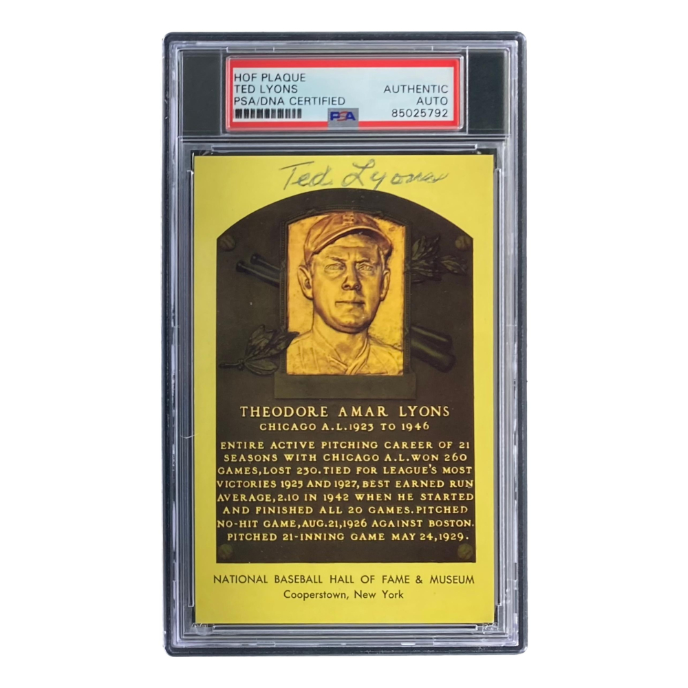 Ted Lyons Signed Hall of Fame Plaque Postcard (PSA) Pristine Auction
