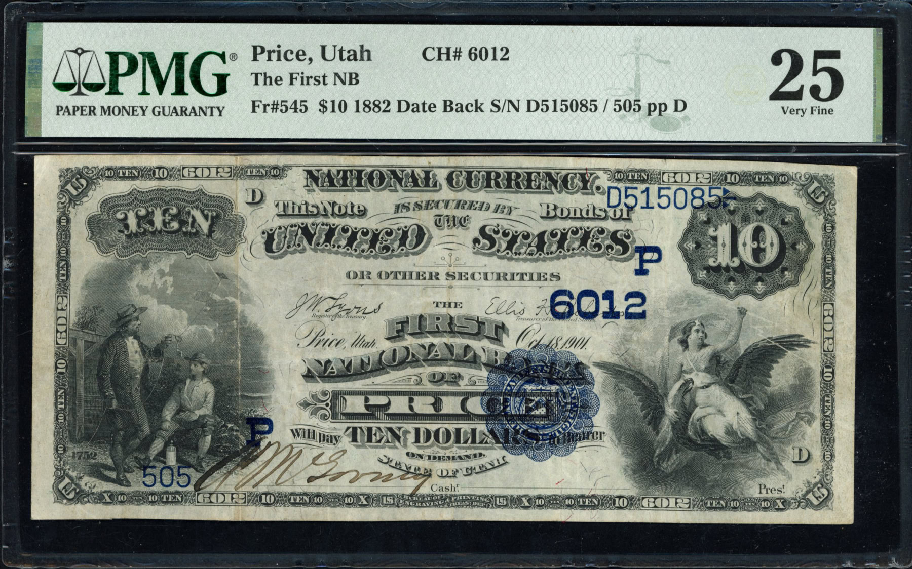 Fr 545 Price Utah 1882 The First National Bank $10 Date Back Note