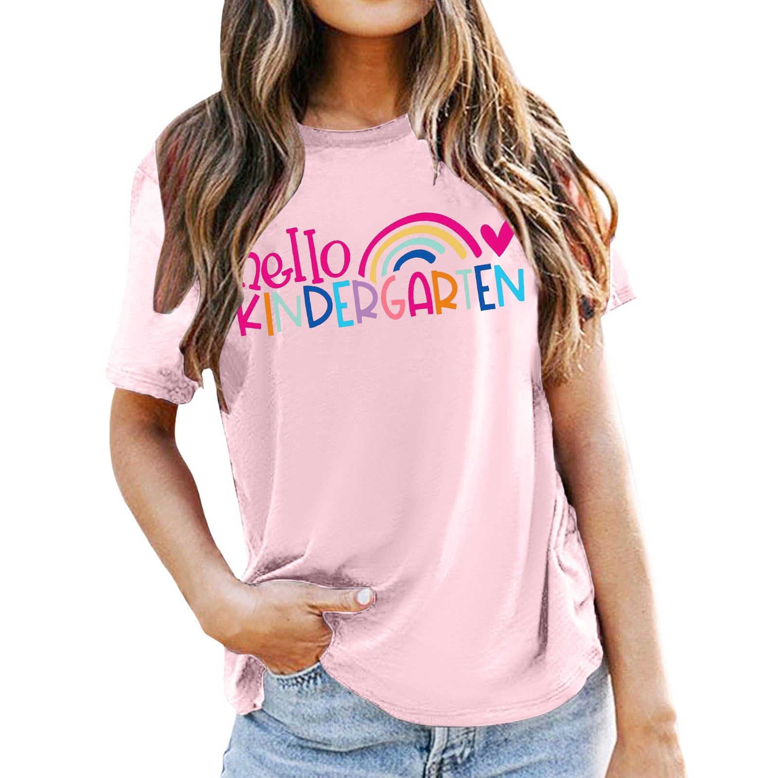 PUYAHG Women #39 s T Shirts Rainbow Letter Printed Short Sleeve Round Neck