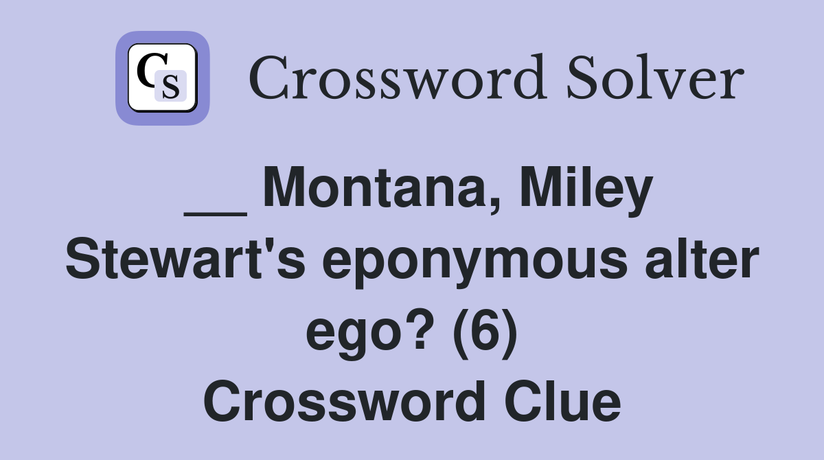 Montana Miley Stewart #39 s eponymous alter ego? (6) Crossword Clue