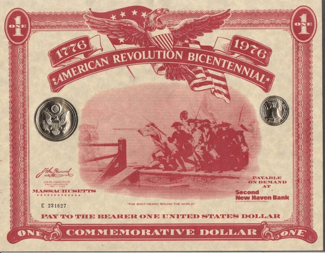 AMERICAN REVOLUTION BICENTENNIAL Commemorative Dollar Certificate MA