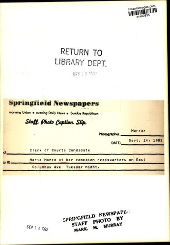 1982 Press Photo Clerk of Courts Candidate Marie Mazza at Headquarters