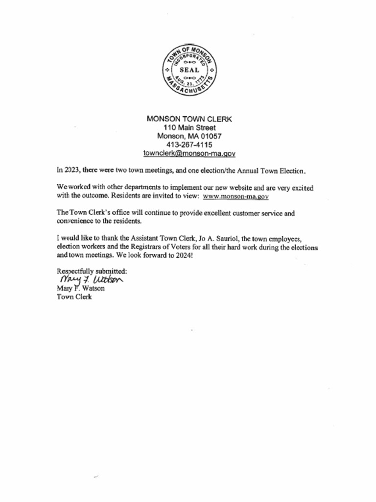 Monson MA clerk report 2023 PDF