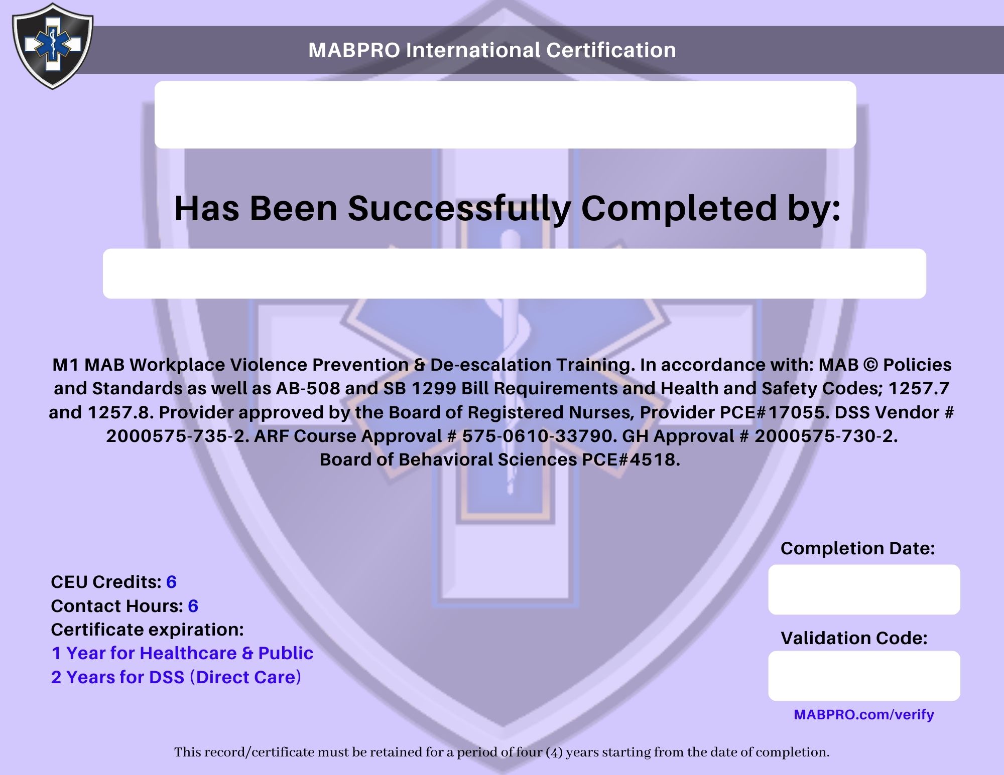 MAB (MANAGEMENT OF ASSAULTIVE/AGGRESIVE BEHAVIOR) AB 508 CERTIFICATION