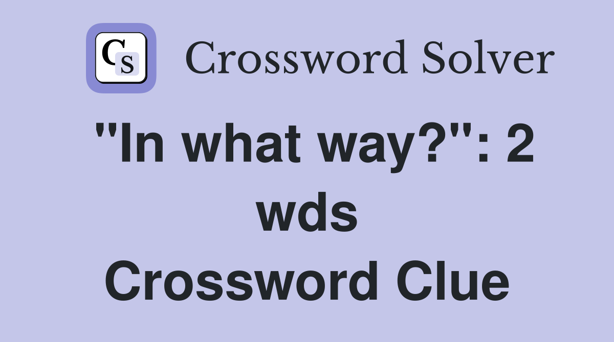 quot In what way? quot : 2 wds Crossword Clue Answers Crossword Solver