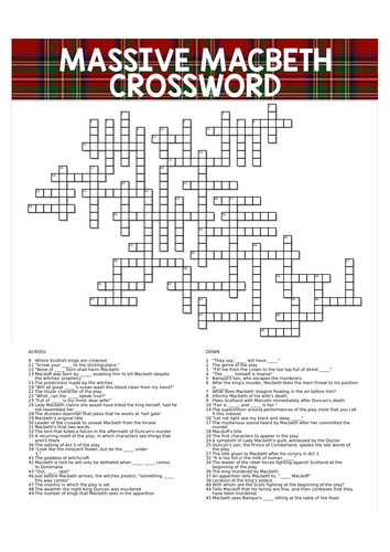 MASSIVE Macbeth Crossword Puzzle for Revision 50 Clues Teaching