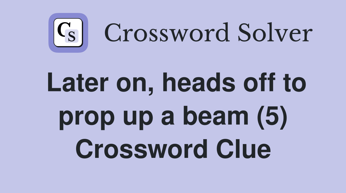 Later on heads off to prop up a beam (5) Crossword Clue Answers