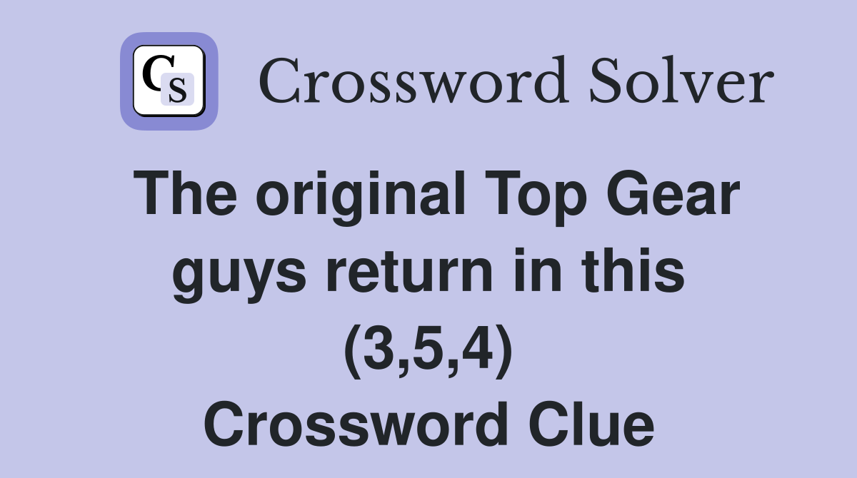 The original Top Gear guys return in this (3 5 4) Crossword Clue