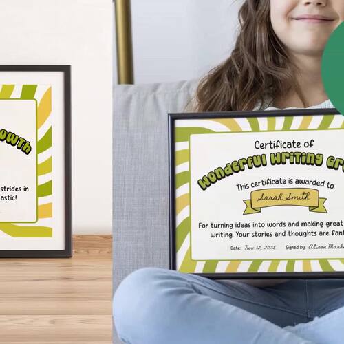 Wonderful Writing Growth Certificate of Achievement Award Certificates