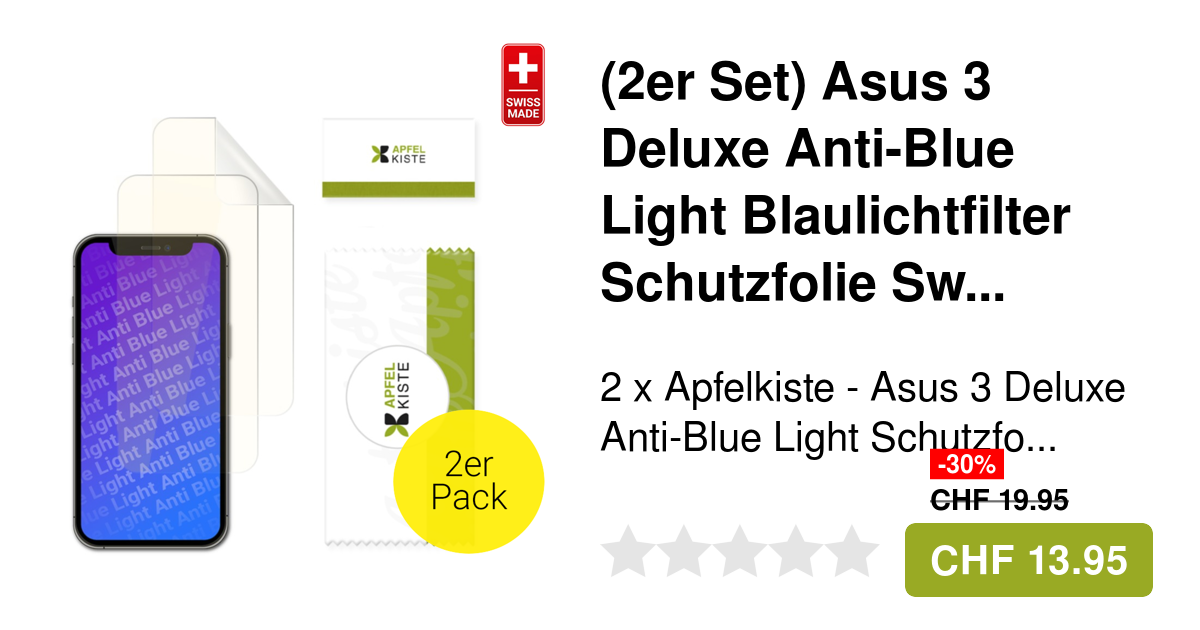 Apfelkiste Asus 3 Deluxe Anti Blue Light Folie Swiss Made (Case Friendly)