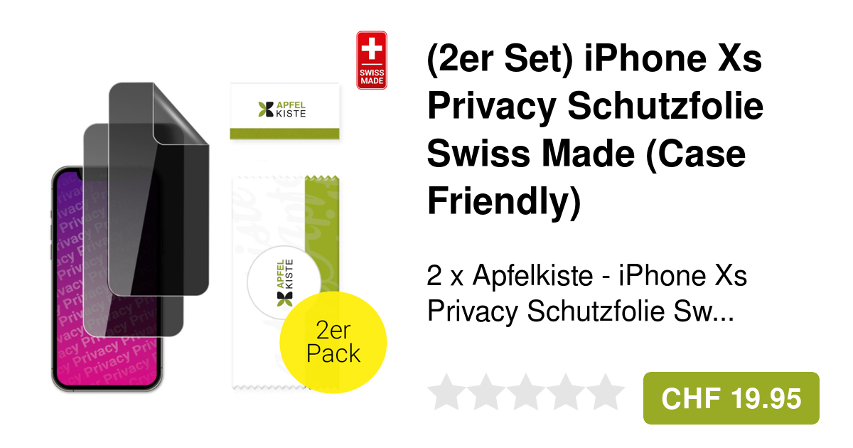 Apfelkiste iPhone Xs Privacy Folie Swiss Made (Case Friendly)