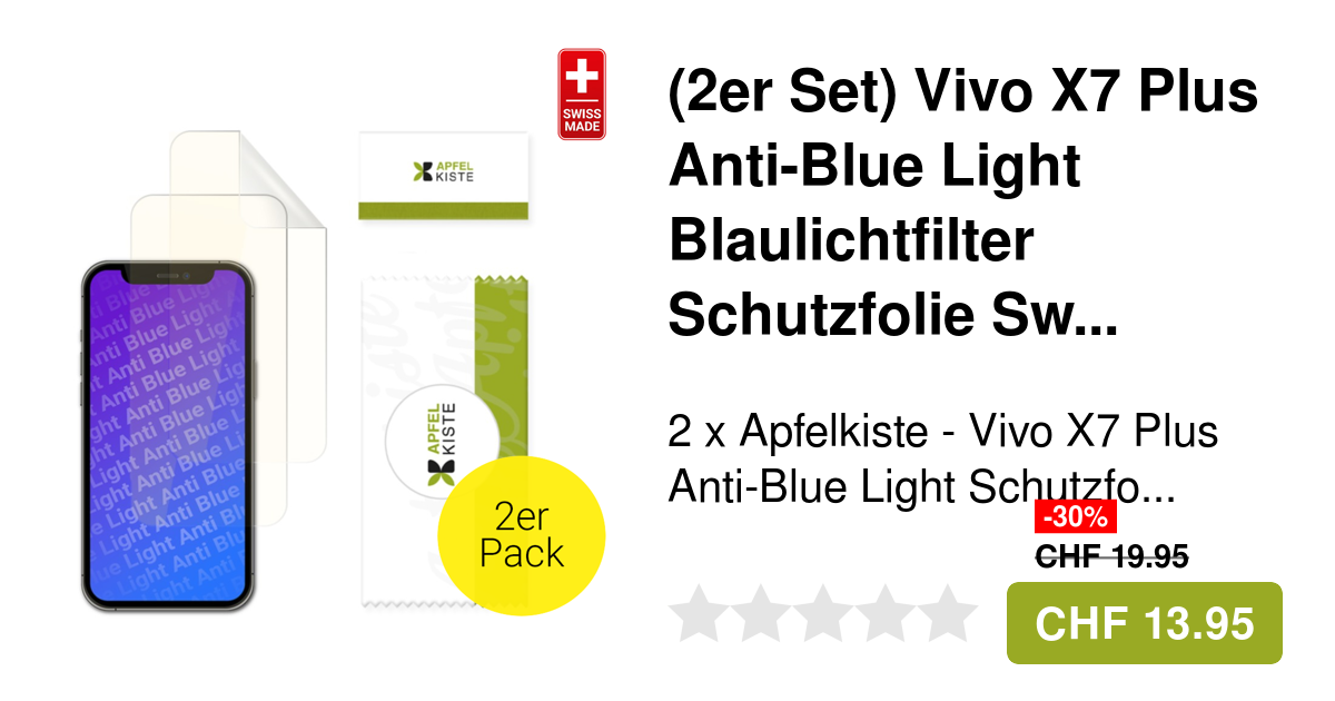 Apfelkiste Vivo X7 Plus Anti Blue Light Folie Swiss Made (Case Friendly)