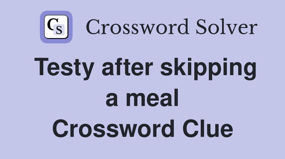 Testy after skipping a meal Crossword Clue Answers Crossword Solver