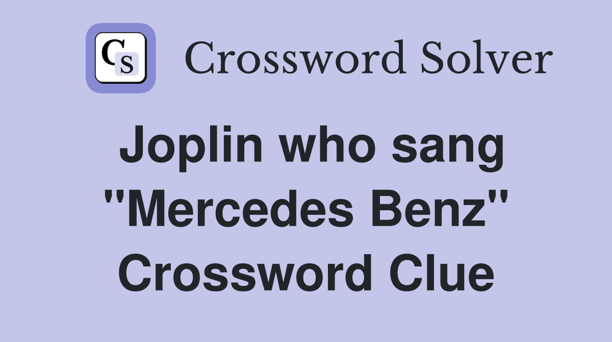 Joplin who sang quot Mercedes Benz quot Crossword Clue Answers Crossword Solver