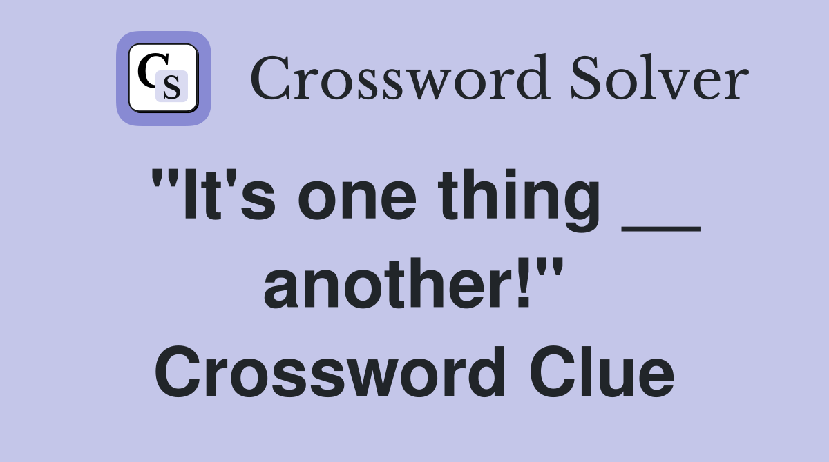 quot It #39 s one thing another quot Crossword Clue Answers Crossword Solver