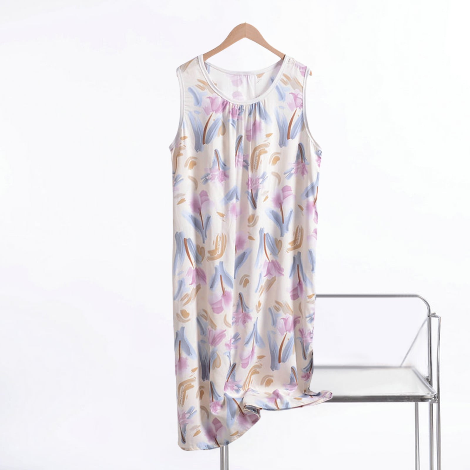 Casual O Neck Sleeveless Dress Fly Floral Print With Pocket Long