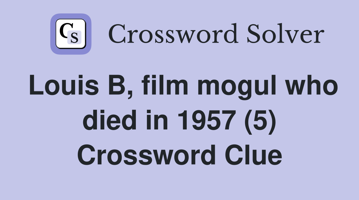 Louis B film mogul who died in 1957 (5) Crossword Clue Answers