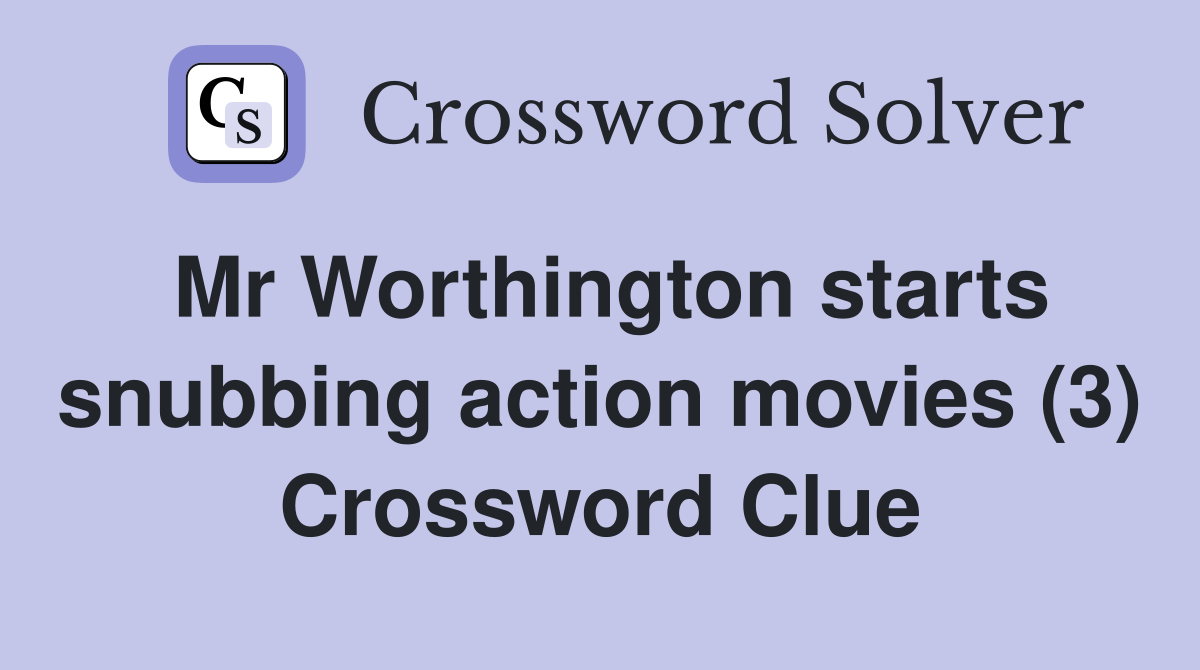 Mr Worthington starts snubbing action movies (3) Crossword Clue
