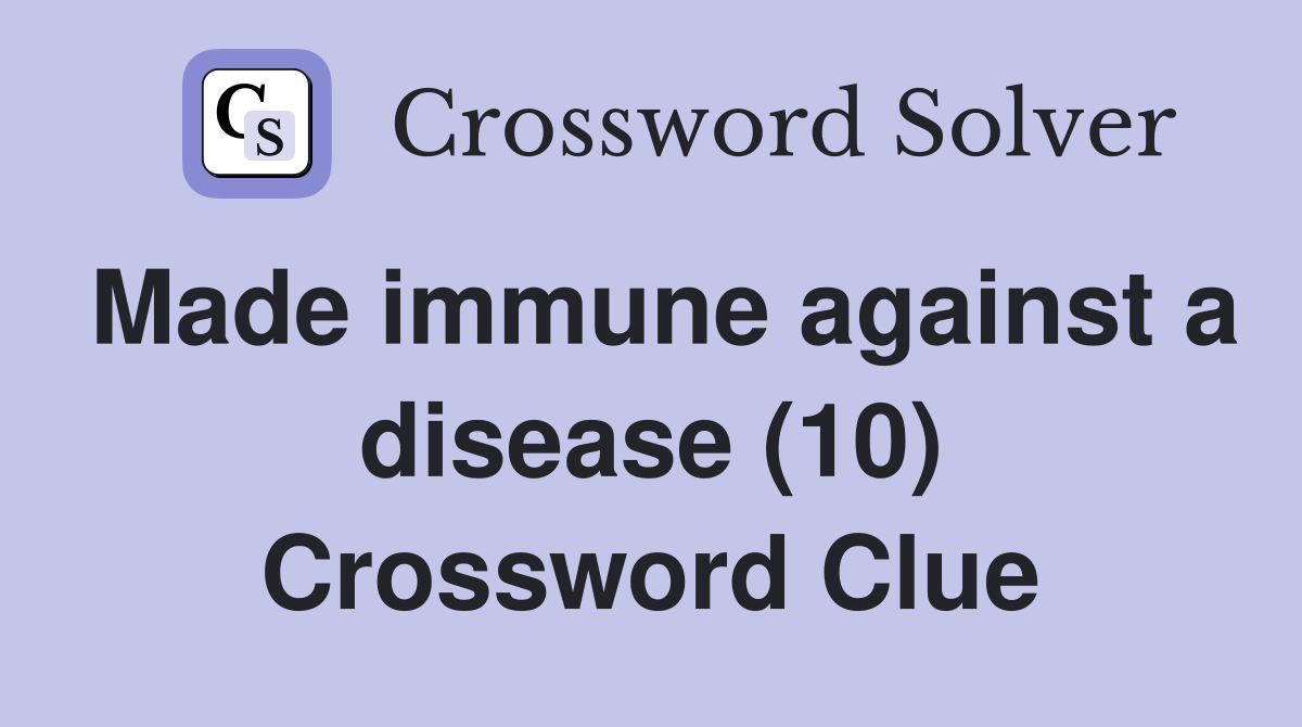 Made immune against a disease (10) Crossword Clue Answers Crossword