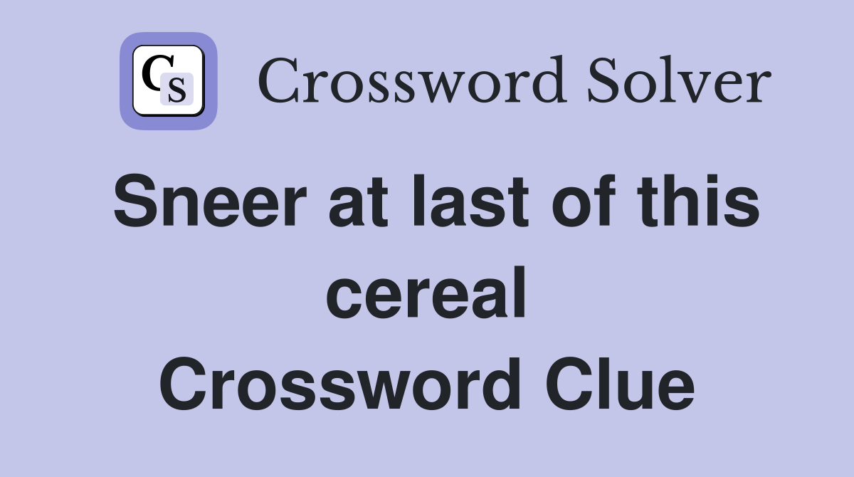 Sneer at last of this cereal Crossword Clue Answers Crossword Solver