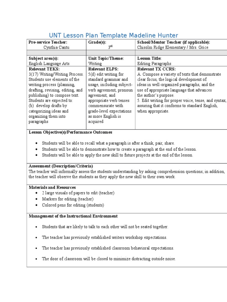 Madeline Hunter Lesson Plan Template Word Toptemplate my id