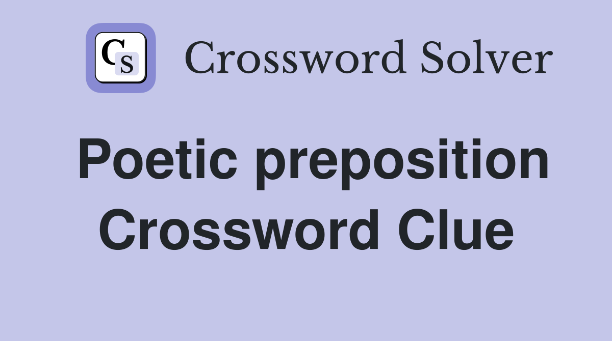 Poetic preposition Crossword Clue Answers Crossword Solver