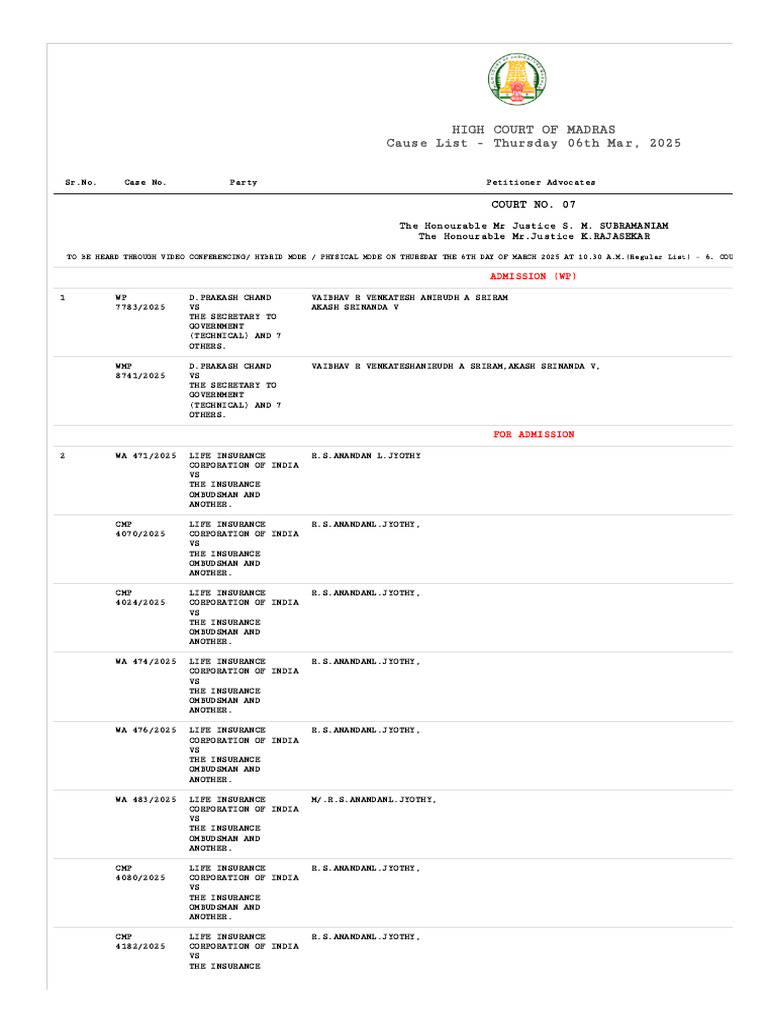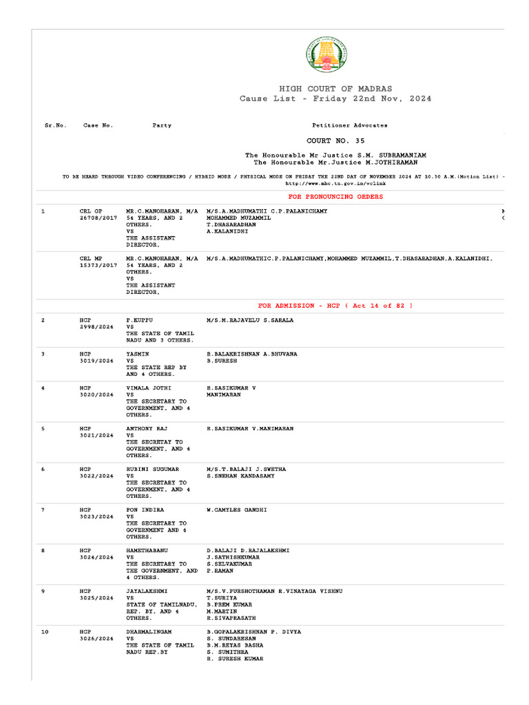 Here are some of the images for Madras High Court Cause List that we found in our website database.