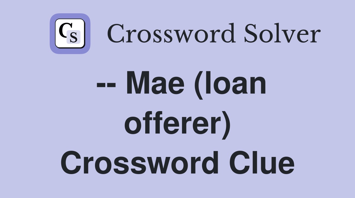 Mae (loan offerer) Crossword Clue Answers Crossword Solver