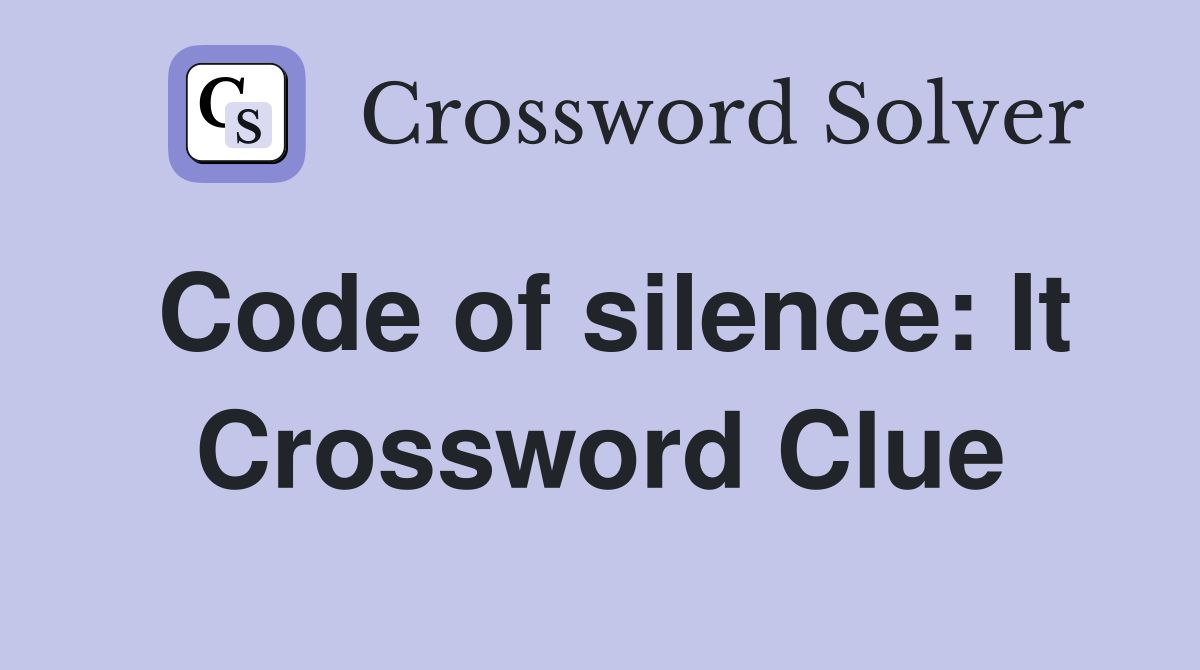 Code of silence: It Crossword Clue Answers Crossword Solver