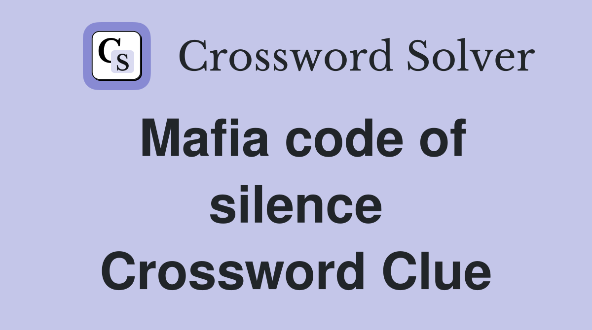 Mafia code of silence Crossword Clue Answers Crossword Solver