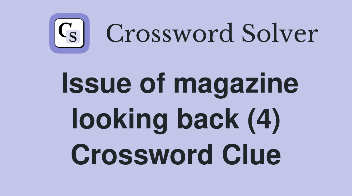 Issue of magazine looking back (4) Crossword Clue Answers Crossword