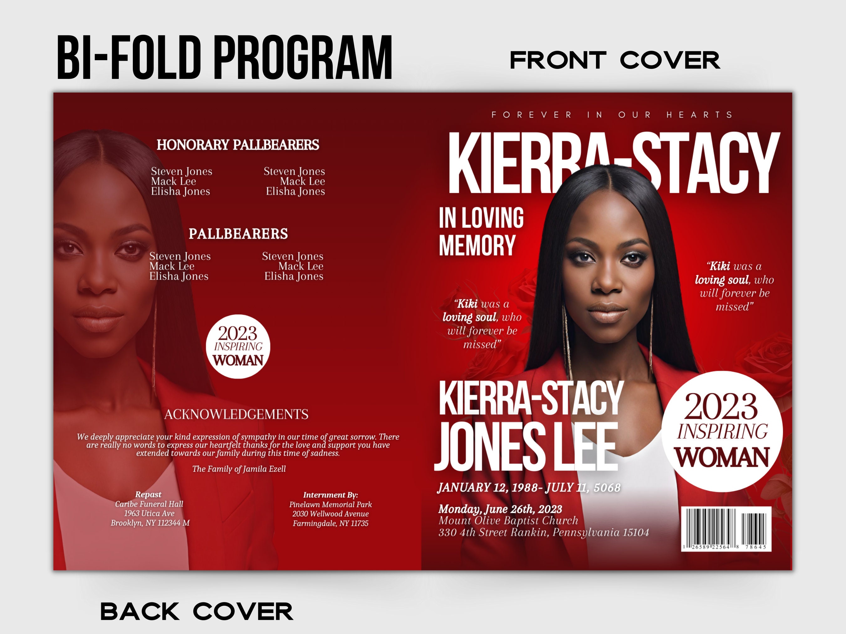 Red Vogue Funeral Program Template: Celebration of Life (digital