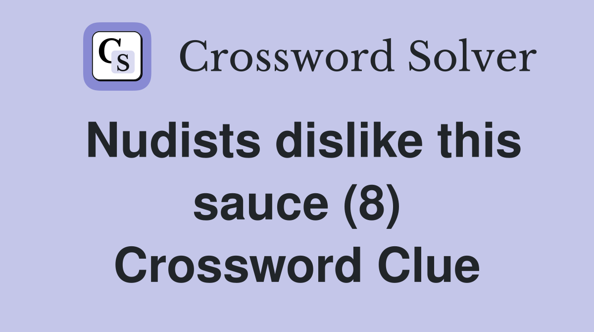 Nudists dislike this sauce (8) Crossword Clue Answers Crossword Solver