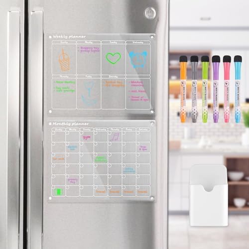 Acrylic Magnetic Monthly and Weekly Calendar for Fridge 2 Set Clear