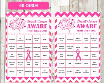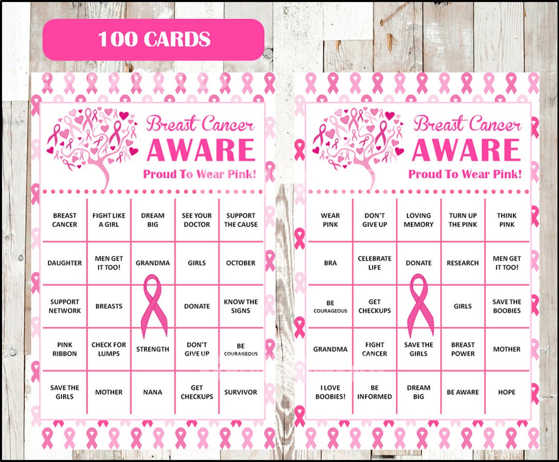 60 Breast Cancer Awareness Month Bingo Cards Printable Pink Ribbon