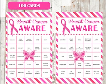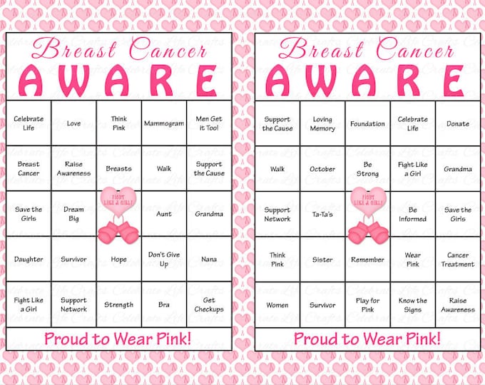 Breast Cancer Awareness Month Bingo Cards Printable Pink Etsy